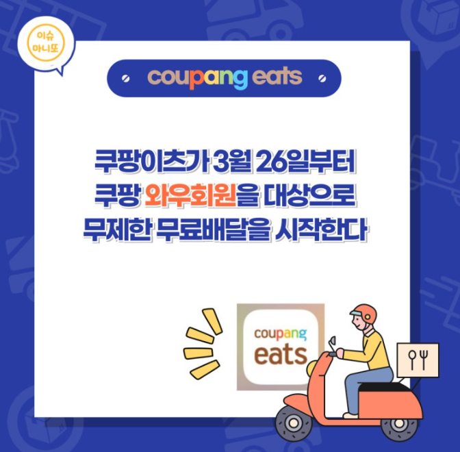 이 서비스는 쿠팡이라는 거대한 온라인 쇼핑몰이 배달 서비스 시장에 진출하면서 탄생하였습니다. 쿠팡은 이미 물류 및 배송 시스템에서 뛰어난 기술력과 서비스를 보유하고 있었고, 이를 바탕으로 음식 배달 시장에도 새로운 혁신을 가져오고자 했습니다.